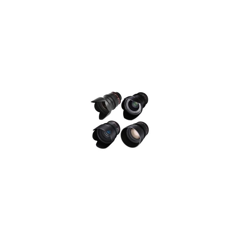 Este kit proporciona cuatro lentes que puede utilizar para fotografiar imágenes desde tomas amplias a retrato; incluye los lentes Cine DS de 16mm, 35mm, 50mm y 85mm de Rokinon para Montura Canon EF que ofrecen ópticas nítidas y características físicas similares para cambios rápidos de lentes.,Especificaciones Lente Rokinon 16mm T2.2 Cine DS: